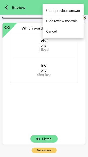 You can now undo review session answers during your review session. Yes, you read right! Simply find the three dots (...) on the right-hand side of the header and click on “Undo previous answer.” You will now have the opportunity to answer that flashcard again without risking a temporal paradox.